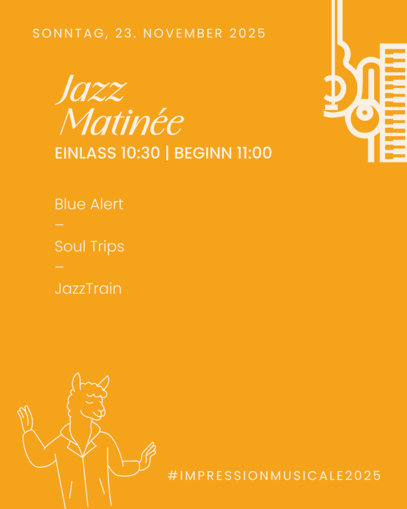Unser Jazz Matinée lässt das Impression Musicale 2025 mit einer Auswahl von Kuchen und unseren hausgemachten Klößen ausklingen. Dabei wird dieser morgendliche Genuss von Jazz Musik der Bands Blue Alert, Soul Trips und JazzTrain begleitet.