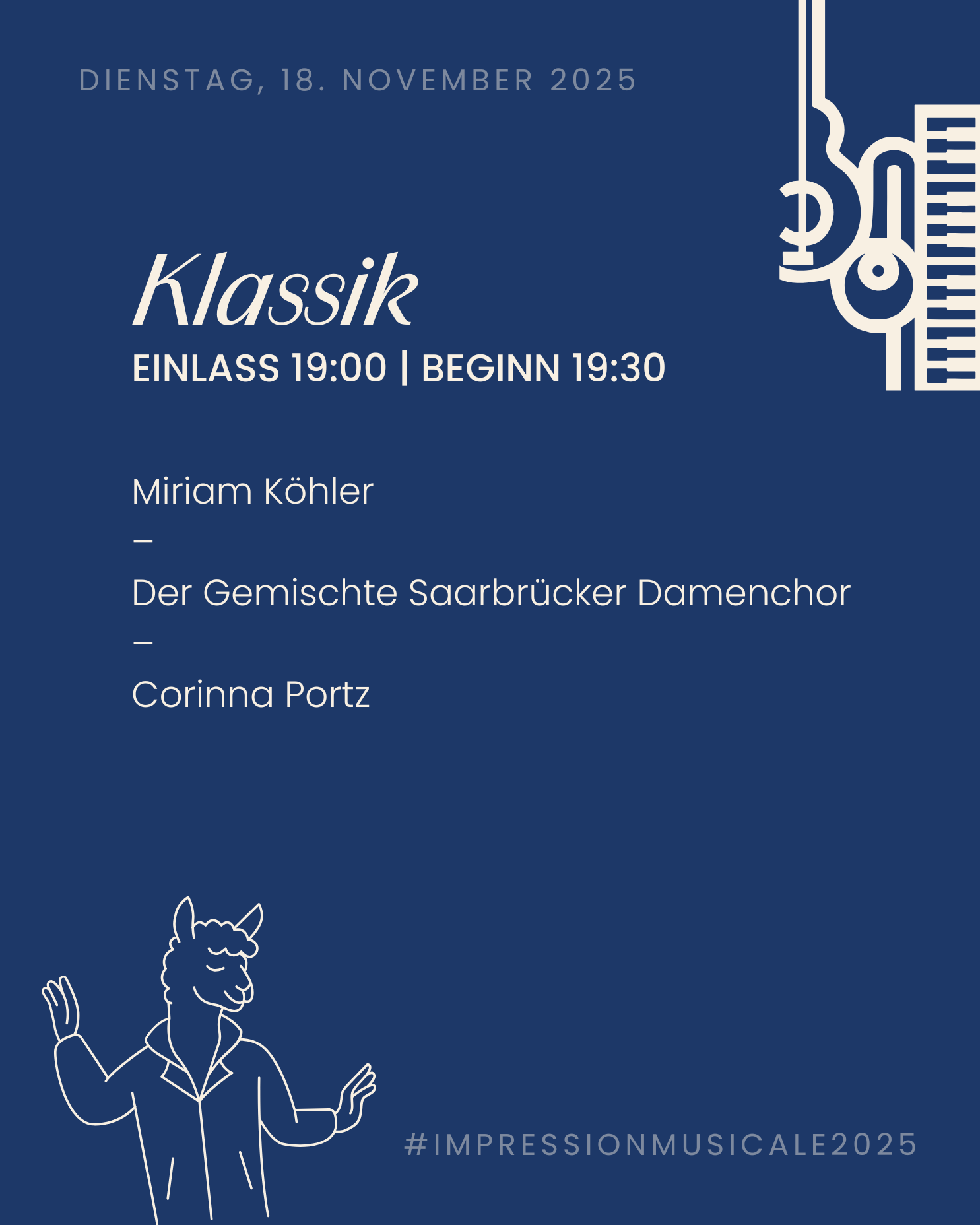 Wieder einmal ist es so weit, das Impression Musicale steht vor der Tür. Auch dieses Jahr beginnt diese musikalisch erfüllte Woche mit klassischer Musik, prickelndem Sekt und tollen Künstlern, wie der Harfinistin Corinna Portz, dem gemischten Saarbrücker Damenchor und Miriam Köhler, die das Illtal-Gymnasium mit wundervollen Klängen verzaubern.