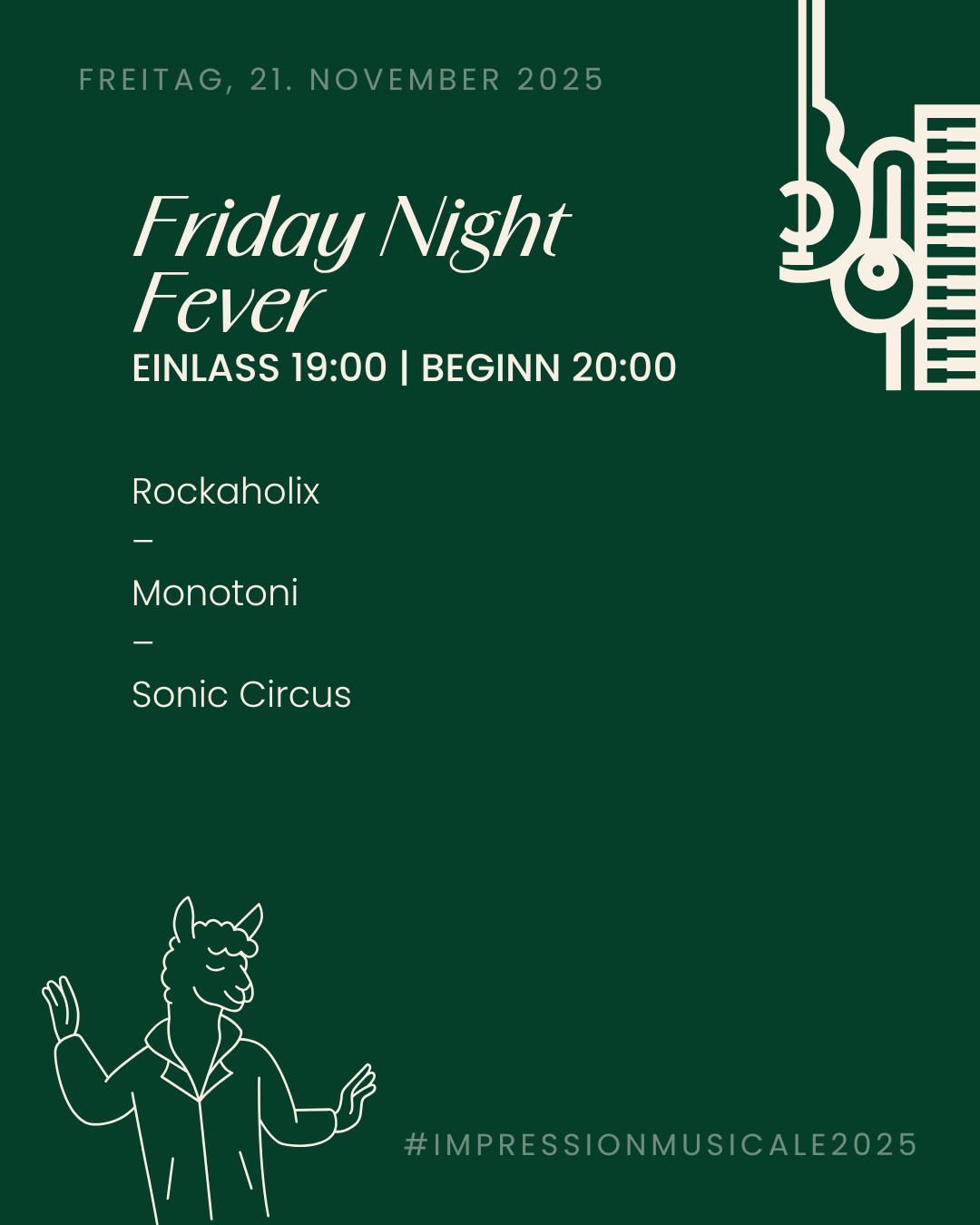 Rockaholix eröffnen den Abend, Monotoni heizen danach richtig ein – und Sonic Circus sorgen zum Abschluss für ein rockiges Finale, das Sie garantiert nicht stillsitzen lässt.